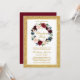 Elegante Watercolor Burgundy Marsala Floral Wreath Convite de festas de Natal. Inclui belos rosas e verde botânico. Dourado quadro de brilho.