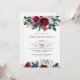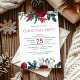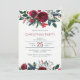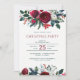 Elegante aquarela Inverno Festa de Natal modelo com buquês de burgundy vermelha e de rosas de pénia branca com ramos sazonais de abeto verde de pinheiro, bagos vermelhos e folhagem. +++++++++++++++++++ O convite é adequado para festas chic elegantes de Natal de inverno.
