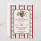 Festa de Natal, janto vermelho listras retrógradas pinheiras arcos de pinheiros cartões de convite modelo descarregamento instantâneo, convites de festas de Natal, pinecone inverno verde convites para festas de natal, bagas de inverno