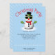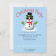 Legal Snowman Feliz Natal, Natal Personalizado, Anúncio de Feriado. Personalize o Convite exclusivo de Feriados fofo. Ilustração de um legal boneco de neve com óculos e luvas verdes, lenço vermelho e chapéu preto em azul claro.