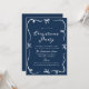 Traga a elegância do eterno para sua comemoração de Natal com este convite de festas de Natal com arcos desenhados à mão e fita em um fundo de marinho profundo. A "Festa de Natal" é apresentada num guião branco manuscrito festivo, em conjunto com uma letra serif clássica para os seus detalhes de eventos. Sofisticado mas alegre, este convite é uma escolha versátil para festas de Natal, jantas de férias ou reuniões de empresas.