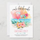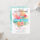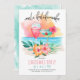 Tema do mar tropical O convite de festas de Natal apresenta um pôr do sol de praia em aquarela, cocktails festivos, flores de hibisco e folhas de palma com uma legenda "Mele Kalikimaka" em letra de estilo manuscrita. Perfeito para as festas de férias de praia, tropical, havaiana, luau e Tiki.