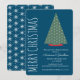 Convites de festas de Natal com fundo de flocos de neve e árvore de Natal simples