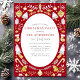 Celebre a temporada de festas com este convite de festa de Natal vermelho e dourado elegante, apresentando um design moderno com ornamentos festivos, árvores e elementos de festa. As cores ousadas e detalhes intrincados tornam este convite perfeito para hospedar um evento festivo glamoroso e alegre. Personalize com os detalhes da sua festa para uma celebração inesquecível.