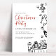 Entre no espírito de Natal com esta divertida convite de festas de Natal com rabiscos desenhados à mão a preto de uma mesa de presentes, champanhe de bolinho, óculos de vinho e maleta à direita do convite. Uma maneira divertida e moderna de convidar amigos e família para uma noite festiva de bebidas, risos e alegria de férias.