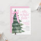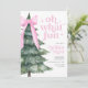 Convite para festas de Natal com árvore de Natal e arco rosa. Que divertido!