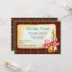 Um doce convite de festas de Natal elegante, na horizontal, feito com o tradicional clã verde e vermelho Morrison tartan. Gráficos de uma área de texto de cor d'água doce, tem sinos com um arco, em um canto. Personalize o texto personalizado para atender às necessidades do seu partido.