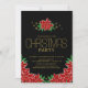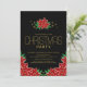 Compartilhe a alegria e convide seus amigos e entes queridos para a sua celebração de Natal com este elegante preto com texto de ouro poinsettia floral convite de festas de Natal.