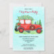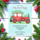Convite de festas de Natal de Caminhão Vermelho com Árvores de Aquarela e Flocos de Neve Fundo Azul de inverno, No verso está uma camada aquosa com sinos. Alterar texto usando a opção personalizar esta modelo. Para alterações adicionais no estilo e cor do texto, use a opção personalizar mais. Veja a nossa coleção de lojas abaixo para mais produtos com este design.