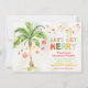 O vamos tem Feliz com este Convite de festas de Natal Holiday na Praia Tropical com palmeira de aquarelas, ornamentos, luzes de Natal e fontes divertidas. Excelente para uma ilha, praia ou qualquer clima quente Festa de Natal de Férias