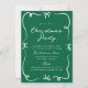 Celebre a temporada com este convite de festas de Natal com arcos desenhados à mão e sotaques de fita em um rico fundo verde. Um guião festivo manuscrito põe em destaque a "Festa de Natal", enquanto o resto dos seus detalhes de eventos são apresentados em letras brancas clássicas para um olhar polido. Perfeito para festas de Natal, jantas de férias ou reuniões de férias de companhia, este design alegre torna simples receber convidados com charme sazonal.