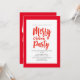 Um fundo vermelho com uma grande tipografia de diversão branca é a base para esta festa de Natal personalizada. Altere facilmente as informações para personalizar seu design. De uma gama de papéis de carta de Natal de Apenas Designs Finos.
