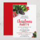 Convites de festa de Natal elegantes com fundo branco invernal, folhagem de árvore de Natal, bagas vermelhas, bagas geadas, um cone de abeto e um modelo festivo moderno que é fácil de personalizar.