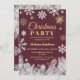 Este elegante Convite de festas de Natal apresenta um fundo vermelho adornado com intrincados flocos de neve brancos e ouros. Ramos de pinheiro fosco espumante na parte inferior, adicionando um encanto do inverno. A design cria um sentimento festivo, porém sofisticado, perfeito para uma celebração de feriado.
