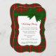 Convite elegante da festa de Natal feito no teste padrão verde e vermelho tradicional da xadrez de tartan do clã de Cameron, com suporte branco uma área de texto dada forma. Os gráficos de um arco e de uma fita verdes do olhar do cetim decoram a parte superior do convite e um esboço verde e vermelho das folhas e das bagas do azevinho, na parte inferior. Personalize o texto vermelho e preto para serir suas necessidades do partido.