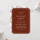 Prepare-se para comemorar em estilo com este convite de Natal chique! Ele apresenta um fundo vermelho escuro, um quadro branco de tinta manual em forma de tíquete, e uma mistura de tipografia clássica e roteiro elegante. "Festa de Férias" é impressa em letras maiúsculas ousadas, mas você pode facilmente personalizá-la para qualquer evento — como "Janto de Natal" ou "Papais noeis Secretos". Os detalhes do evento são exibidos em uma fonte limpa e clássica, com o nome do host em um belo script. A parte de trás é uma pesada profunda com linhas brancas marcadas para uma vibração acolhedora e eterno. Também disponível como download digital. Explore itens correspondentes na coleção ou procure em nossa loja designs de cartão de Natal mais exclusivos.