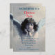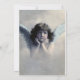 Linda design de vintage de um doce anjo de Natal com asas brancas e brancas suaves e bochechas rosadas, segurando seu rosto em suas mãos. Parecendo tranquilo e gentil. O fundo está cheio de nuvens etéreas macios. personalize/personalize com os detalhes da sua festa de Natal.