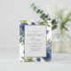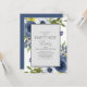 Elegante convite de celebração de festa de ninho vazio em azul naval, amarelo e branco com folhas verdes em aquarela floral sobre branco. A letra é uma fonte de caligrafia linda. Entre em contato conosco para obter ajuda com personalização ou para solicitar produtos correspondentes.