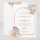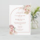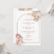 Belas aquarelas de grama das pampas florais e um arco elegante enquadram os detalhes da sua festa de noivado neste convite de casamento elegante, com tipografia de terracota estilosa e suas iniciais monogramadas no verso. Desenhado por Thisisnotme©