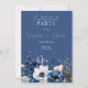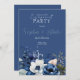Convite Festa de noivado Azul, Branco e Verde Floral Azul