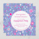 Padrão de flores selvagens botânicas, rosa-claro e branco, moderno e feliz, sobre fundo azul-perigudo. Um belo convite de coordenação Festa de noivado que você pode alterar para se adequar à sua própria celebração. Arte original de Nic Squirrell.