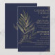 Convite Festa de Noivado Azul Marinho Moderno com Folha de