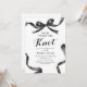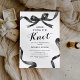 Descubra a elegância redefinida com nossos convites de festa de noivado chiques em preto e branco. Perfeitamente projetados com um fundo branco atemporal e uma borda cativante de laço e fita em aquarela preta. Não é apenas um convite, é uma proclamação de amor que diz 'estamos dando o nó'. Deixe o mundo saber sobre sua união iminente com nosso modelo de texto elegantemente delineado. Faça uma declaração com sofisticação.