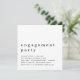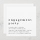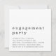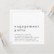 Forma Quadrada Contemporânea Festa de noivado Branca Preta. O cabeçalho é grande em na moda lowercase com os detalhes abaixo. Muito espaço branco no topo para uma sensação contemporânea! Personalize facilmente o texto para seus próprios detalhes.