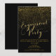 Convite Festa de NOIVADO Chuva de Confetes Preto e Dourado Glam