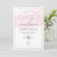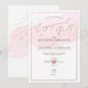 Convites de festa de noivado PixDezines com amostra de aquarela rosa e bolhas de champanhe em ouro rosa. Este design é acentuado com letra caligrafada elegante em ouro rosa falso com moldura removível.
