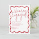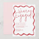 Convites de festa de noivado de Borda Vermelha de Onda Vermelha de Borda Chic Scallop Edge. Convidado para comemoração simples elegante de festa de noivado na fronteira ondulada.