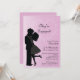 Nosso Casal moderno de beijo em de amor Anúncio de Noivado ou Convite de Noivado é uma forma doce de deixar seus entes queridos saberem que você está noivo! Nosso convite para festas de noivado bonitinho apresenta uma silhueta na moda de um casal beijando em um cenário preto clássico em um fundo rosa pálido com um coração estrelado. Perfeito para um convite de festa de noivado ou para um anúncio de noivado, basta personalizar suas informações e você está pronto para ir! Itens correspondentes incluem convite para chás de panela, cartões de agradecimento, carimbos e muito mais em nossa loja! Ilustrações JW