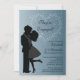 Nosso Casal moderno de beijo em de amor Anúncio de Noivado ou Convite de Noivado é uma forma doce de deixar seus entes queridos saberem que você está noivo! Nosso convite para festas de noivado bonitinho apresenta uma silhueta na moda de um casal beijando em um cenário preto clássico sobre um fundo azul bonito com um coração de estrela. Perfeito para um convite de festa de noivado ou para um anúncio de noivado, basta personalizar suas informações e você está pronto para ir! Itens correspondentes incluem convite para chás de panela, cartões de agradecimento, carimbos e muito mais em nossa loja! Ilustrações JW