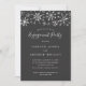 festa de noivado de convite para do floco de neve com flocos de neve com brilho prateado. Todos os textos são editáveis. cinzas de prata e carvão. A parte traseira da carta de convite é xadrez de cinza.