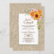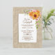Este convite de festa de noivado apresenta um girassol vibrante e um design floral cor-de-rosa numa moldura de burlap. É a maneira perfeita de anunciar sua alegre celebração aos amigos e à família do início de uma jornada ao longo da vida juntos. Os modelos de texto sem complicações são perfeitos para casais ocupados que querem um convite sem a confusão. Escolha entre uma seleção de tipos de papel e estilos de canto para tornar seus convites exclusivos.