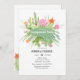 Suculente convite para festa de noivado de ilustração botânica com uma grande variedade de plantas de cacto.