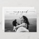 Anúncio de Festas de noivado de Casamento Fotográfico de Script Moderno. O verso inclui detalhes adicionais para convites de festas e/ou informações do registro. Clique no botão personalizar/editar para personalizar este design com suas fotos e detalhes.