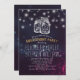 Modelos de Placa de Convite de festa de noivado - Luzes Elegantes Mason Jar e String no Fundo das Luzes Purple Sparkle Bokeh. Um Design perfeito para o seu grande dia. Todo estilo de texto, cores, tamanhos podem ser modificados para ajustado das suas necessidades!