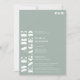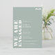 Festa de noivado de casamento simples e empoeirada, branca, com "estamos noivos", escrita em caracteres negros de tamanho excessivo, em branco