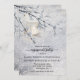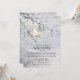 Um convite à festa de noivado de inverno com uma lanterna acesa sobre neve espumante. Na parte traseira, há um modelo de código QR (opcional) para facilitar o RSVP para seus convidados.