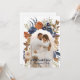 Este belo boho é um modelo de imagem, pronto para sua foto de casal romântica. A parte traseira tem um modelo editável onde você pode adicionar facilmente seus próprios detalhes de festa de noivado. Este modelo tem um escrevendo azul, se estiver escuro demais para ser legível na sua foto, veja nossa versão de fonte branca deste mesmo design. Veja nossas coleções para mais belas estórias de boho. Convite à Festa de noivado de Fotografias de Arco Floral Blue Terracotta.