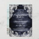 Convide seus amigos e entes queridos para a sua festa de noivado com este rústico lugar de madeira azul convite para se juntar a vocês dois para celebrar suas boas notícias. Uma imagem do casal feliz aparece no verso do convite.