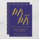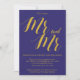 Um convite de festa de noivado rústica, mostra o "Sr. e Sr." com a inscrição em cores douradas sobre fundo azul cobalto. Todos os seus detalhes são soletrados num belo erro de serifa. O papel perfeito para este convite é a kraft artística, dependendo do tipo de papel que você escolhe, que pode variar. Este convite de festa de noivado é totalmente personalizável, estilos de fonte, cor de fundo, design, cor, deixe-me saber se você tem alguma solicitação especial. Envelope americano disponível