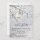 Um convite à festa de noivado de inverno com uma lanterna acesa sobre neve espumante.