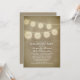 lanternas rústicas elegantes penduradas na corda de luzes ao longo do lado superior da página destes convites de festa de noivado únicos e antigos. Entre em contato comigo se precisar de ajuda para personalizar ou tiver uma solicitação de cor personalizada.