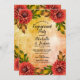 design de convite à festa de noivado com abundância de cor de outono, sob a forma de um design de buquê floral de outono de cor aquosa, com um fundo de aparência sutil e aflitiva, numa variada sombra de âmbar. Design por Holiday Hearts Design (direitos reservados) incorporando elementos de vintage.