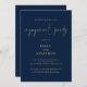 Marinho de Script Clássico Azul e Festa de noivado Dourada. Simples elegância com uma tipografia informal em ouro para a Festa de noivado principal que complementa o resto do texto que você pode facilmente personalizar.