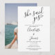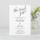 Este convite de festa de noivado preto e branco elegante "ela disse sim" pode ser personalizado com os detalhes da sua festa de noivado e a sua foto especial no verso. Criado por Thisisnotme©
