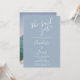 Este convite de festa de noivado "ela disse sim" azul empoeirado e elegante pode ser personalizado com os detalhes da sua festa de noivado e a sua foto especial no verso. Concebido por Thisisnotme©