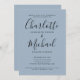 Com nomes de estilo de assinatura, este elegante e moderno convite de festa de noivado simples pode ser personalizado com suas informações em caracteres chicos em um fundo azul empoeirado. Projetado por Thisnotme©